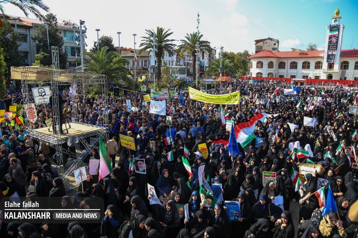 دانش آموزان و شماری از رشت هم زمان با سراسر کشور در مراسم ۱۳ آبان، روز ملی مبارزه با استکبار جهانی، با حضور خود سه واقعه تاریخی این روز را گرامی داشتند و قطعنامه پنج بندی راهپیمایی را قرائت کردند.