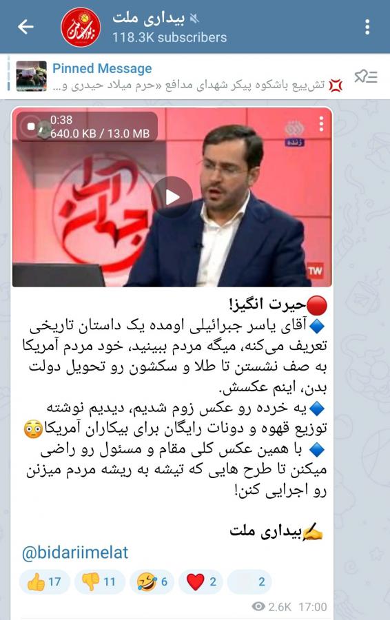یاسر عرب، مستندساز در کانال تلگرامی خود نوشت:جبرائیلی داستان تاریخی تعریف میکنه، میگه؛ در فلان تاریخ مردم آمریکا به صف طلا و سکه هاشون رو تحویل دولت دادن، اینم عکسش.