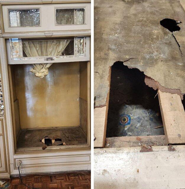 او اضافه کرد: دو کمد در انتهای ضلع شمالی تالار برلیان بود که همیشه در آن بسته بود و در دورههای پیشین برای همخوانی با فضای آیینهکاری تالار، برچسبهای نقرهای روی شیشههای آن نصب کرده بودند که با توجه برنامه ما برای بازگردان اصالت این تالار، آن برچسبها برداشته شد. این کمدها در واقع درهایی بودند که دو بخش تالار را بههم متصل میکردند، اما در جریان تغییرات دوره پهلوی این درها به کمد تبدیل شده بودند و کف آنها هم پوشیده شده بود. ما برچسبها را که برداشتیم داخل کمد دیده شد. قرار شد داخل آن اشیائی قرار گیرد که به این تالار نسبت داده شده است. از جمله این اشیاء یک جفت گلدان خیلی بزرگ بود که در نقاشیِ الگوی چیدمان تالار برلیان وجود نداشت، اما در بعضی از عکسها و در آمار دفاتر مربوط به تالار برلیان مشخصات آنها دیده میشود. هنگام قرار دادن گلدانها، متوجه شدیم کف کمد استقامت ندارد و وزن گلدانها را تحمل نمیکند که قرار شد استحکامبخشی شود، اما پس از کنار زدن چوبهای کف کمد، متوجه شدیم در زیر کمد تعدادی کاشی وجود دارد. زمانی که چوبهای کف کمد را خارج کردیم تشخیص دادیم که بخشی از کاشیهای تالار برلیان در آنجا نگهداری میشود، که البته کاشیها بسیار آسیب دیده و جرم زیادی هم گرفته بودند و بخشهایی از کاشیها هم خرد شده بود.