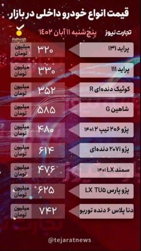 با توجه به نرخهای اعلامی وبسایت کارنامه، قیمت خودرو به ترتیب زیر اعلام شد.