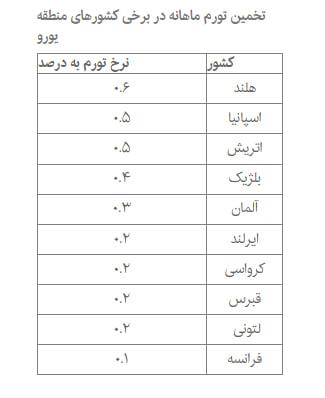 این در حالی است که نرخ تورم در ایران در ماه های اخیر حدود ۳۰ تا ۴۵ درصد اعلام شده است؛ رقمی که نشان می دهد تورم کشورهای اروپایی در مقایسه با ایران بسیار پایین تر بوده و به اصطلاح «در حد شوخی» به نظر می رسد.